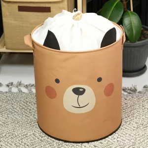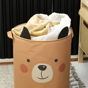 Faltbarer Popeline Wäschekorb Aufbewahrungskorb mit Bärendruck 43 Liter