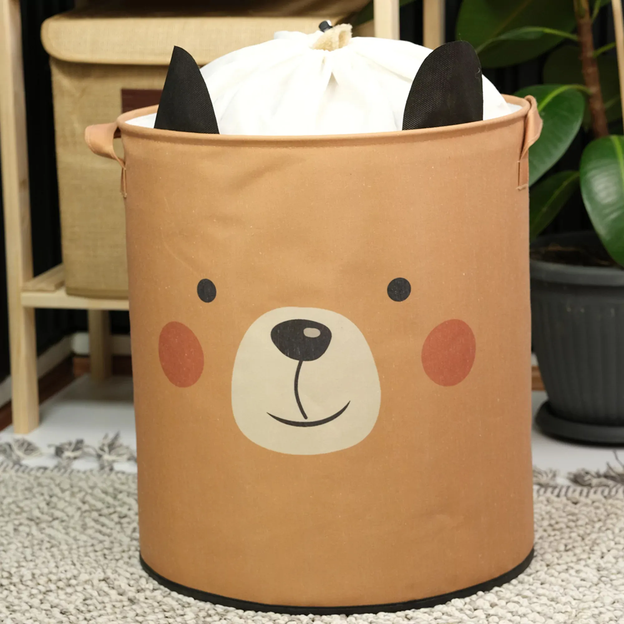 Faltbarer Popeline Wäschekorb Aufbewahrungskorb mit Bärendruck 43 Liter