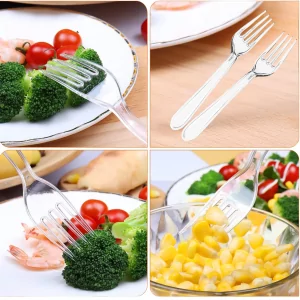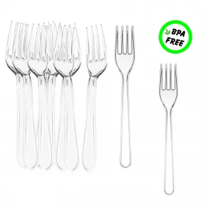 • Hergestellt aus robustem Material, sind die Gabeln stabil, geschmacksneutral und transparent.