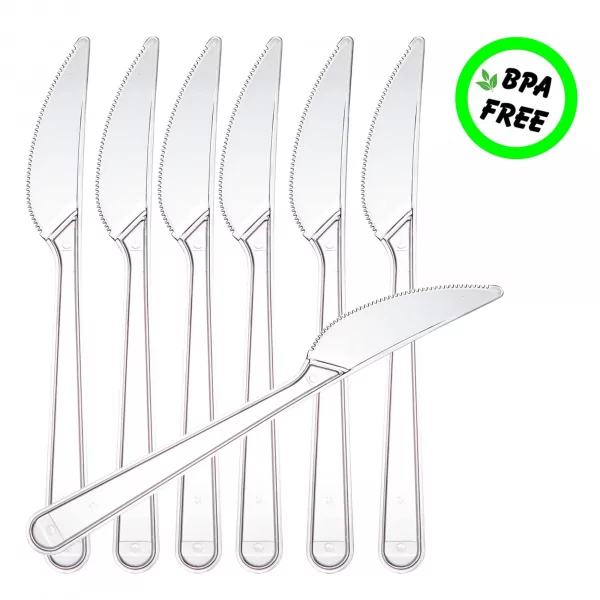 Mehrweg Plastikmesser - 1.000 Stück/Karton (10x100) - Wiederverwendbar Plastikbesteck - Deluxe, transparent Ursprünglicher Preis war: 29,99 €Aktueller Preis ist: 23,99 €.