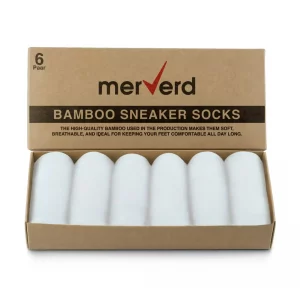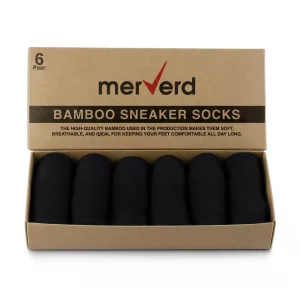 Genießen Sie den ganzen Tag über ultimativen Komfort und Schutz mit den merVerd Bambus Sneakersocken. Diese antimikrobiellen Socken bestehen aus 100 % organischem Bambus und bieten eine hautfreundliche, atmungsaktive Lösung für alle, die Wert auf Gesundheit und Nachhaltigkeit legen.
