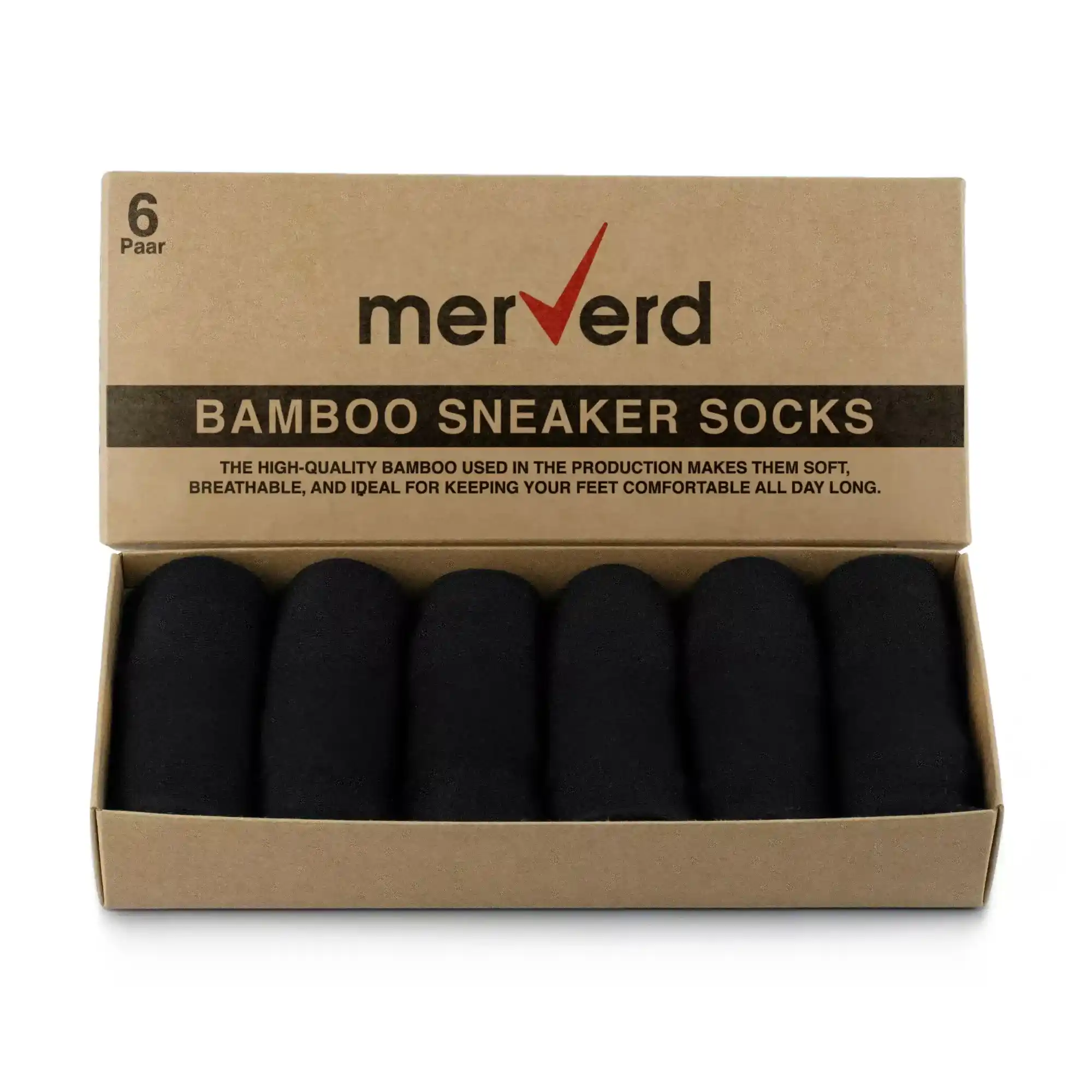 merVerd Bambus Sneakersocken Damen und Herren, 6 Paar, Schwarz