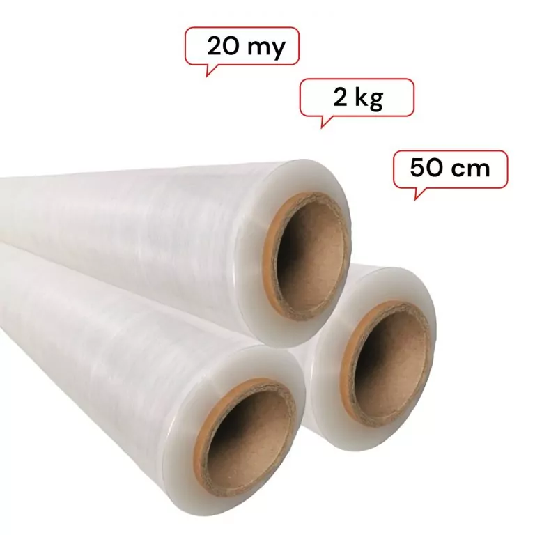Stretchfolie – Verpackungsfolie – Palettenfolie, 6 x Rollen, 50 cm, 20 mikron (6×2 kg)