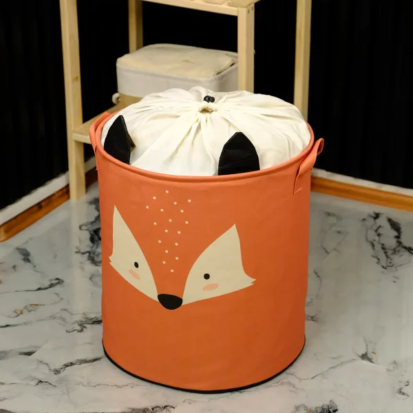 Faltbarer Popeline Wäschekorb Aufbewahrungskorb mit Fuchs Motiv, 43 Liter